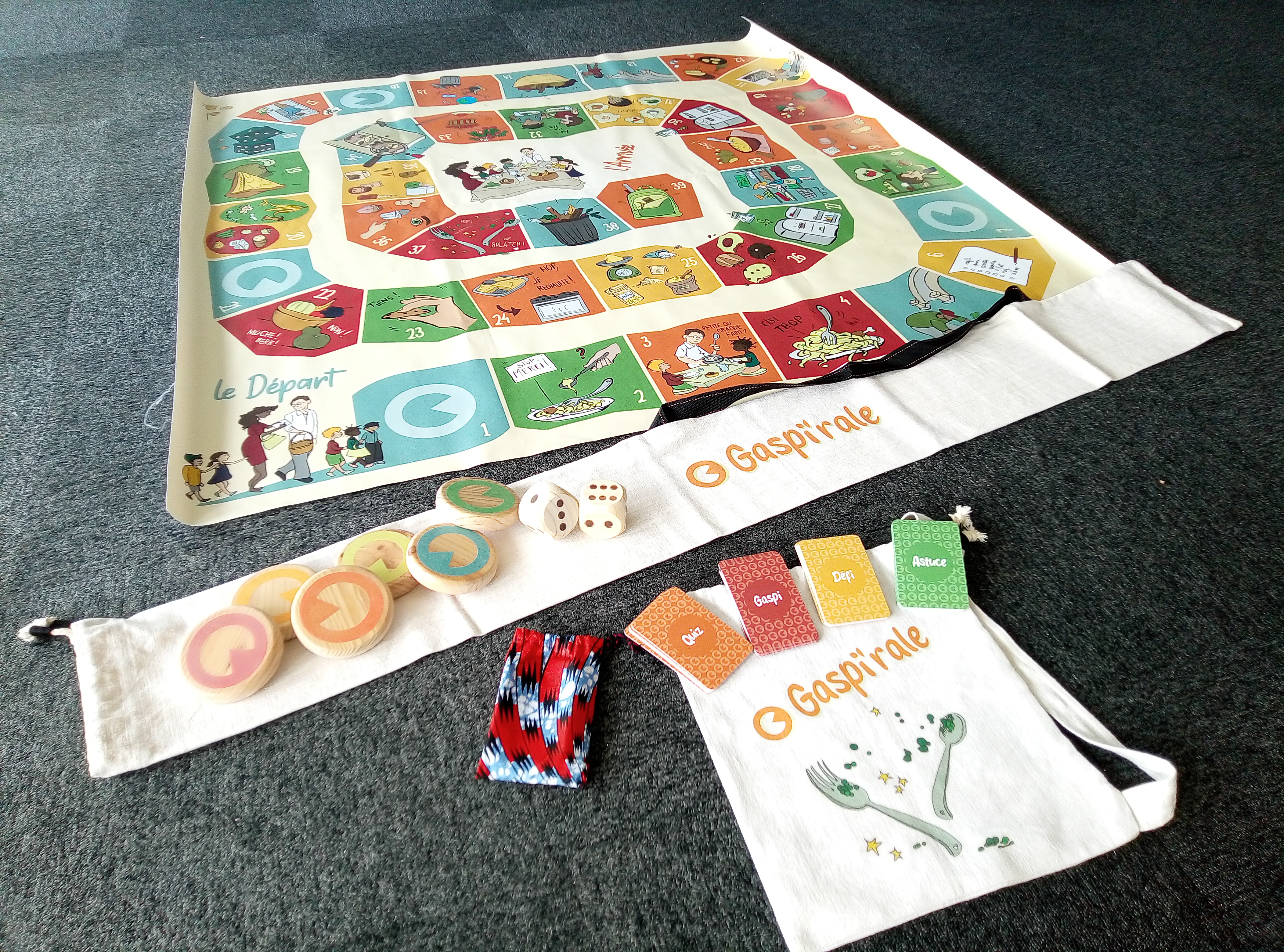 Basé sur le principe du jeu de l’oie, en version géante (bâche de 1,5m x1,5m) ; le Gaspi’rale est l’outil idéal pour : les écoles, stands, événements publics, médiathèques, marchés…
